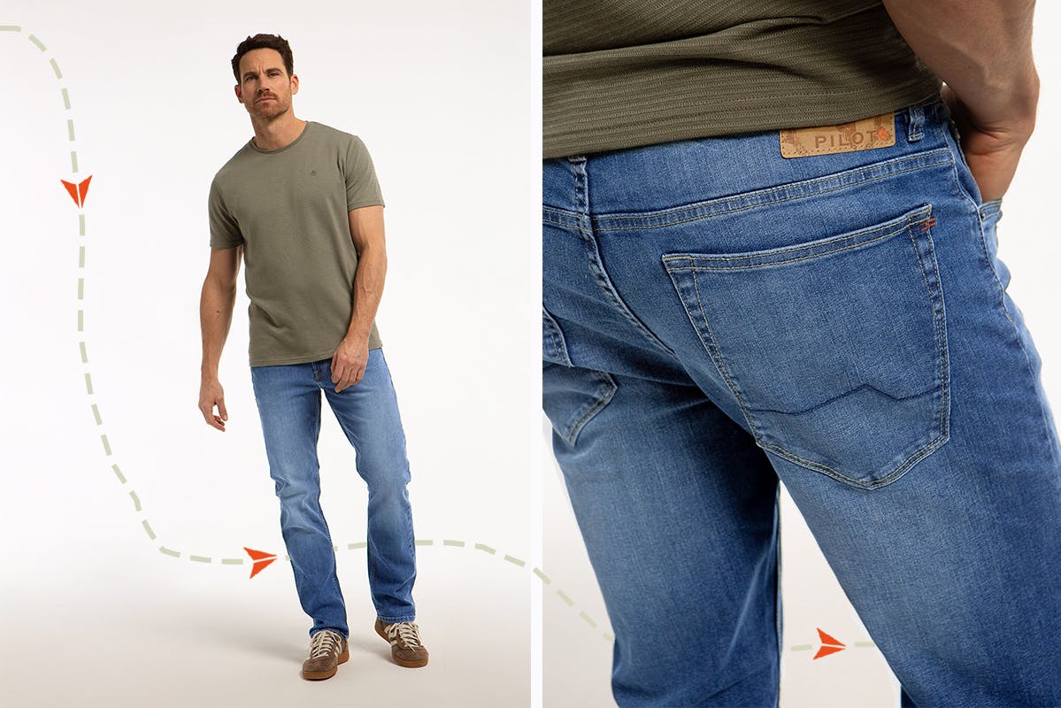 Met de introductie van de Alpha (Regular-Tapered fit), Bravo (Regular-Slim fit) en Charlie (Regular-Straight fit) breidt Pilot het denim assortiment uit met drie nieuwe fits die perfect aansluiten bij jouw levensstijl. Met moderne, eigentijdse pasvormen en uitgesproken wassingen heeft elk model een unieke en karaktervolle uitstraling. Net als de Pilot Palmer zijn de Alpha, Bravo en Charlie voorzien van de nieuwe Pilot-branding, waarmee ze een frisse en eigentijdse touch krijgen. De subtiele details, zoals de Pilot-rivet op de coinpocket en de kenmerkende stiksels op de achterzakken, geven de jeans een verfijnde en herkenbare afwerking die direct in het oog springt. Veelzijdige jeans met een pure, authentieke look.